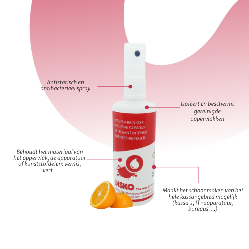 Nettoyant puissant et écologique, spécialement formulé pour éliminer les salissures tenaces sur la plasturgie des terminaux de paiement, des caisses et sur toutes les surfaces bureautiques.